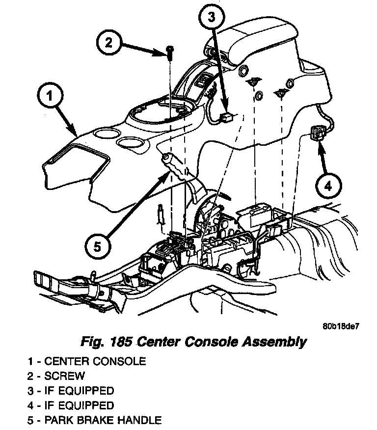 8. Remove center console assembly (Fig. 185).