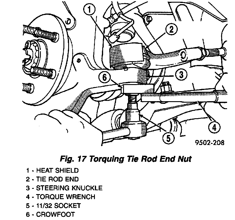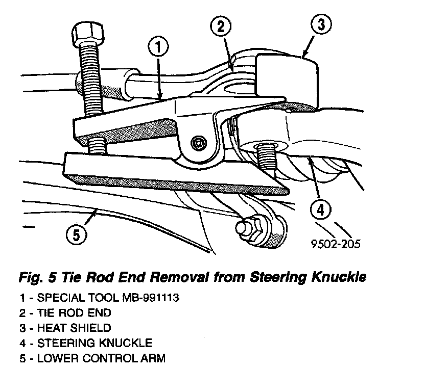 7. Separate tie rod end from steering knuckle arm, using Tool MB-991113 (Fig. 5).