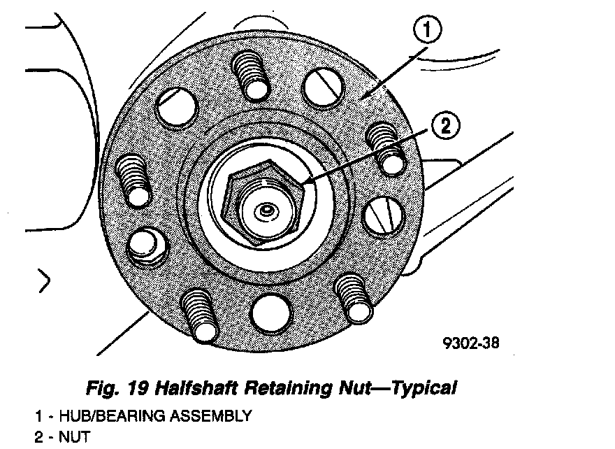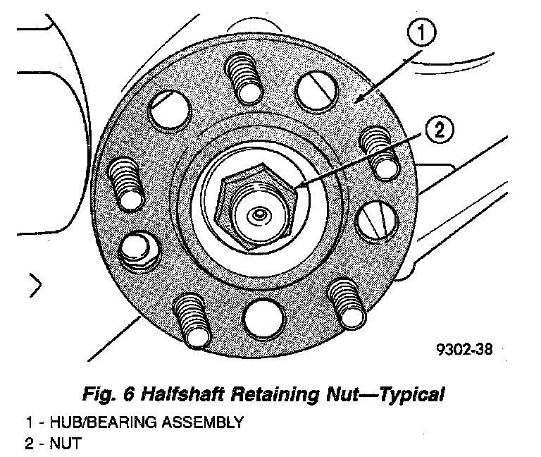 8. Remove the halfshaft-to-hub and bearing retaining nut (Fig. 6).