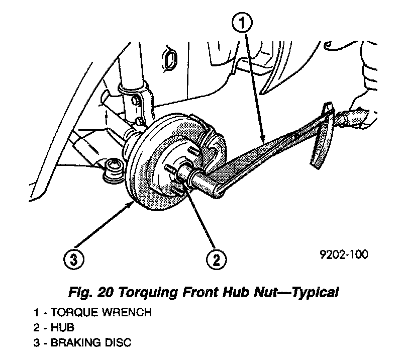 11. Clean all foreign matter from the threads of the outer C/V joint stub axle. Install hub nut onto threads of halfshaft (Fig. 19). With vehicle brakes applied to keep braking disc from turning, tighten hub nut to 150 Nm (110 ft. lbs.) (Fig. 20).