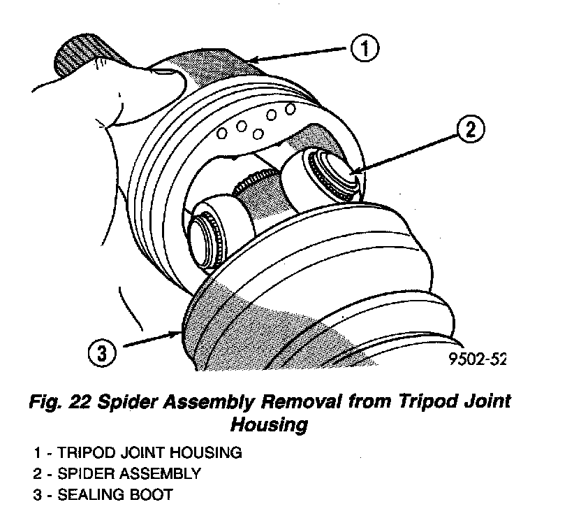 2. Slide the tripod joint housing off the spider assembly and the interconnecting shaft (Fig. 22).