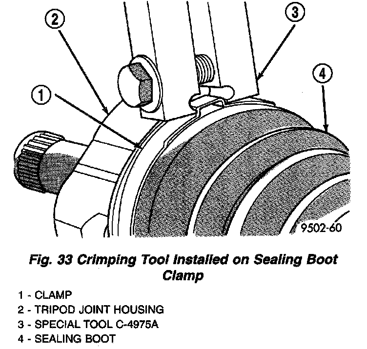 - Clamp sealing boot onto tripod housing using Crimper, Special Tool C-4975-A.
