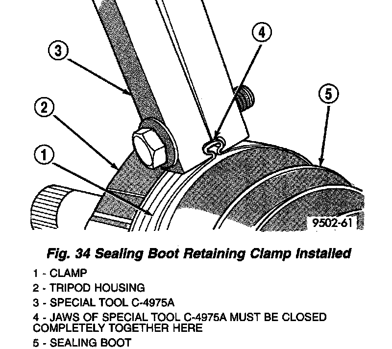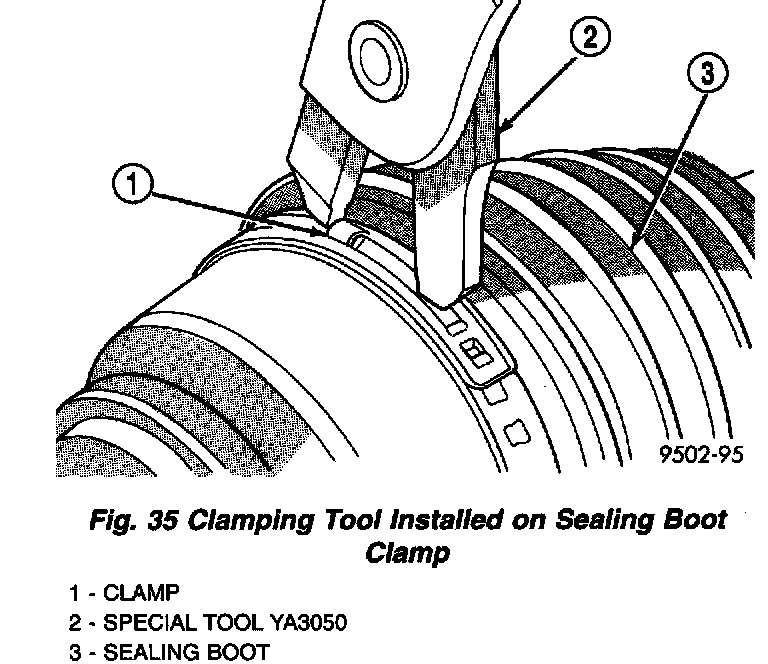 - Clamp sealing boot onto tripod housing using clamp locking tool, Snap-On YA3050 or an equivalent.