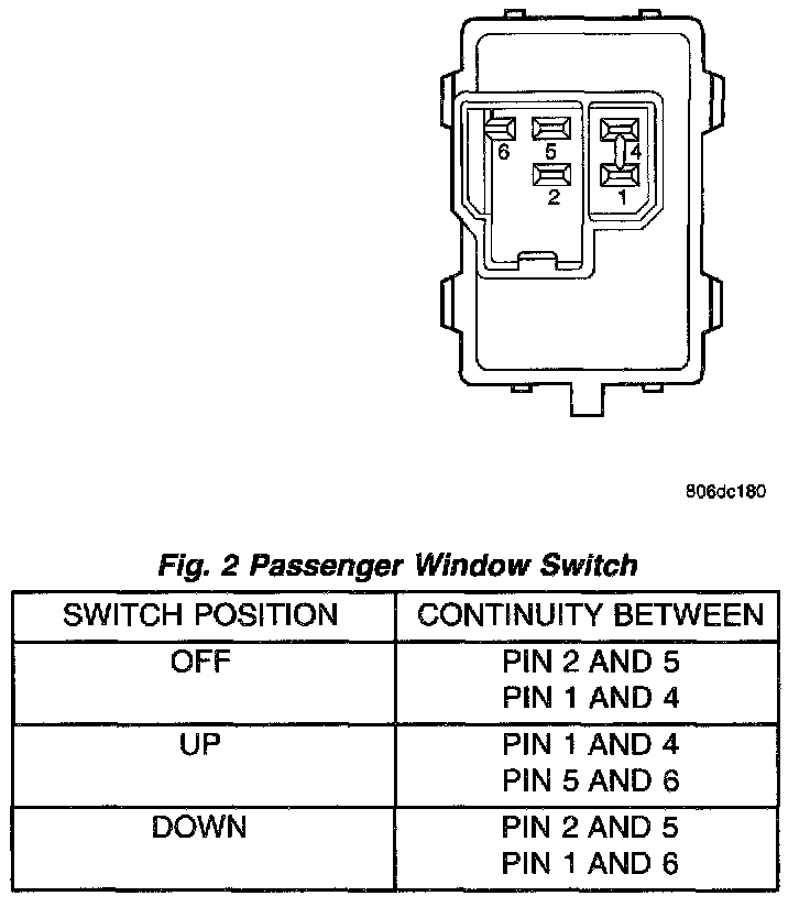 For switch testing, remove the switch from its mounting. Using an ohmmeter, refer to Window Switch Continuity Charts to determine if continuity is correct and. If the results are not obtained, replace the switch.
