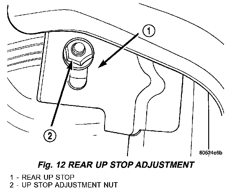 10. Verify that the forward up stop fully contacts hook on glass. Adjust contact bolt on the forward up stop as necessary.