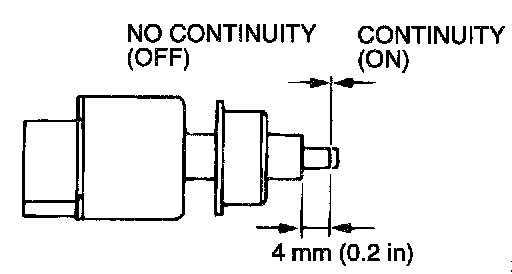 3. The stoplight switch is in good condition if there is no continuity when the plunger is pushed in to a depth of within 4 mm (0.2 inch) from the outer case edge surface, and if there is continuity when it is released.