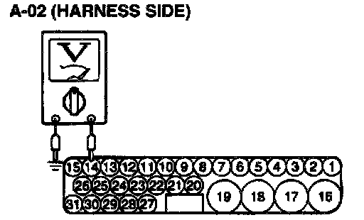3. Measure the voltage between terminal 14 and ground.