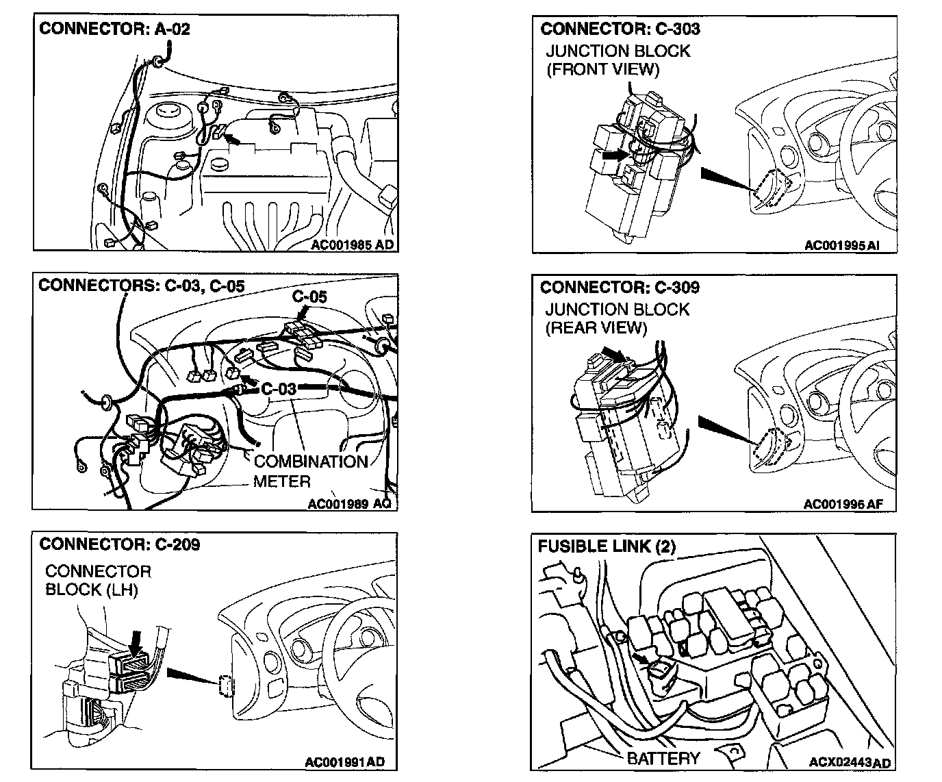 NOTE: After inspecting intermediate connector C-209, C-303, or C-309, inspect the wire. If intermediate connector C-209, C303, or C-309 is damaged, repair or replace it. If the connector has been repaired or replaced, go to STEP 7.