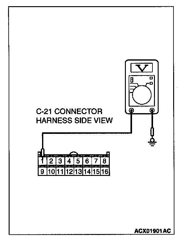 STEP 2. Check the output circuit voltage at auto-cruise control-ECU connector C-21 by backprobing.