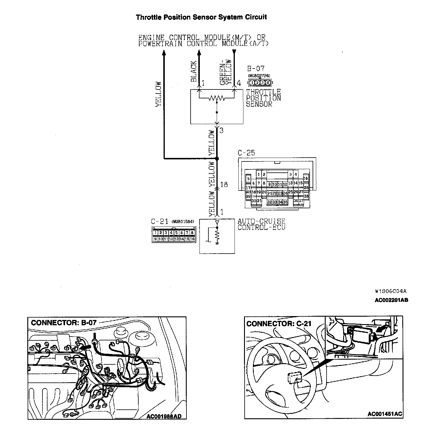 STEP 4. Check the harness wire between throttle position sensor connector B-07 and auto-cruise control-ECU connector C-21.