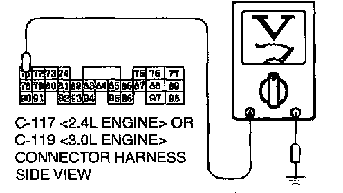 STEP 3.Check the sensor output voltage at PCM connector C-117 <2.4L Engine> or C-119 <3.0L Engine> by backprobing.