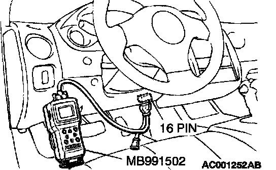 1) Connect scan tool MB991502 to the data link connector.