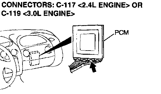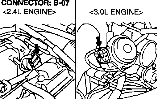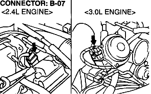 1) Do not disconnect connector C-117 <2.4L Engine> or C-119 <3.0L Engine>.