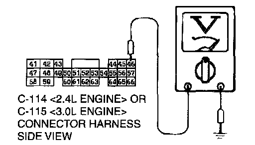 STEP 8. Check the power supply voltage at PCM connector C-114 <2.4L Engine> or C-115 <3.0L Engine> by backprobing.