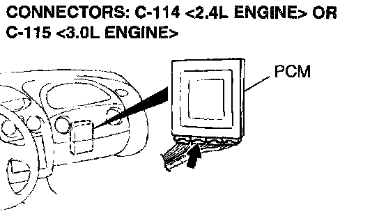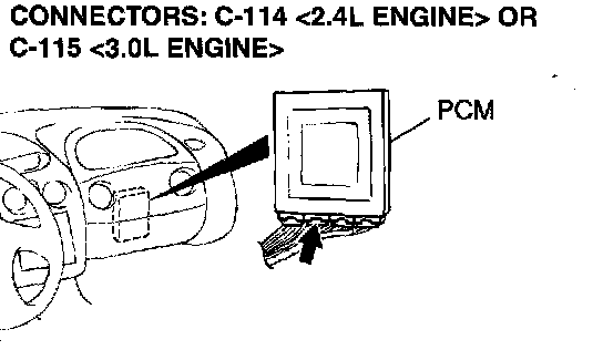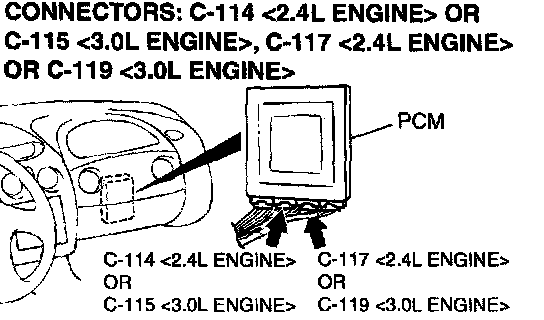1) Do not disconnect connector C-114 <2.4L Engine> or C-115 <3.OL Engine>.