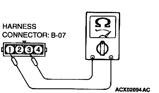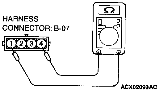2) Measure the resistance between connector terminal 1 and 4.