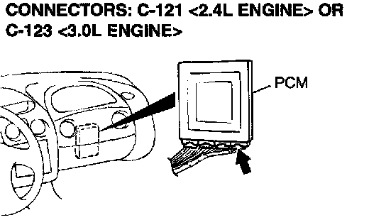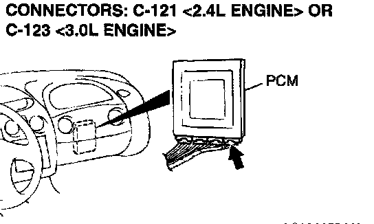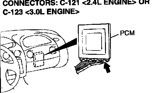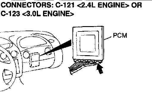 1) Do not disconnect connector C-121 <2.4L Engine> or C 123 <3.0L Engine>.