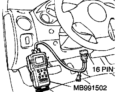 CAUTION: To prevent damage to the scan tool MB991502, always turn the ignition switch to the "LOCK" (OFF) position before connecting or disconnecting the scan tool MB991502.