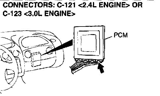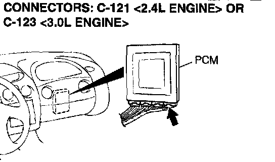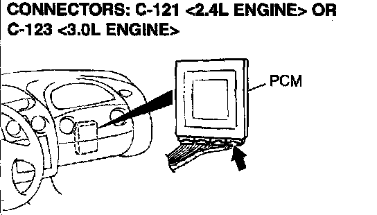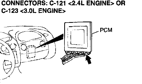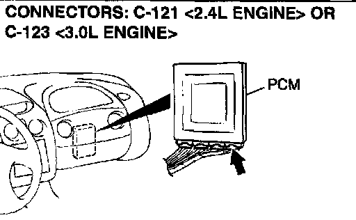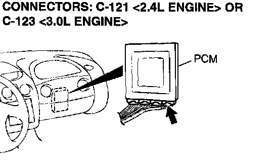 1) Do not disconnect connector C-121 <2.4L Engine> or C 123 <3.0L Engine>.