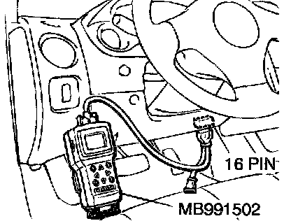 CAUTION: To prevent damage to the scan tool MB991502, always turn the ignition switch to the "LOCK" (OFF) position before connecting or disconnecting the scan tool MB991502.