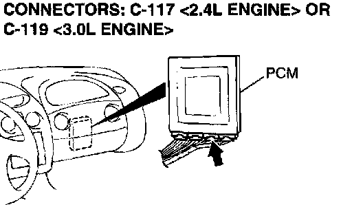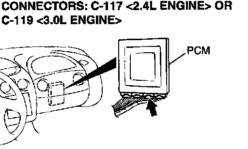 1) Do not disconnect connector C-117 <2.4L Engine> or C-119 <3.0L Engine>.