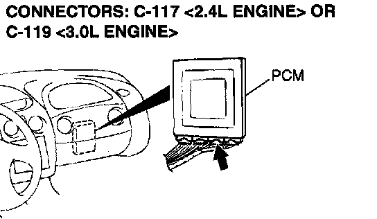STEP 4. Check connectors C-117 <2.4L Engine> or C-119 <3.0L Engine> at PCM and C-25 at intermediate connector for damage.