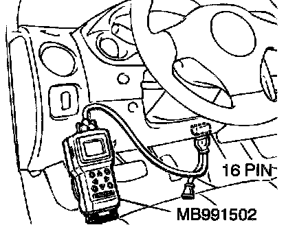 CAUTION: To prevent damage to the scan tool MB991502, always turn the ignition switch to the "LOCK" (OFF) position before connecting or disconnecting the scan tool MB991502.