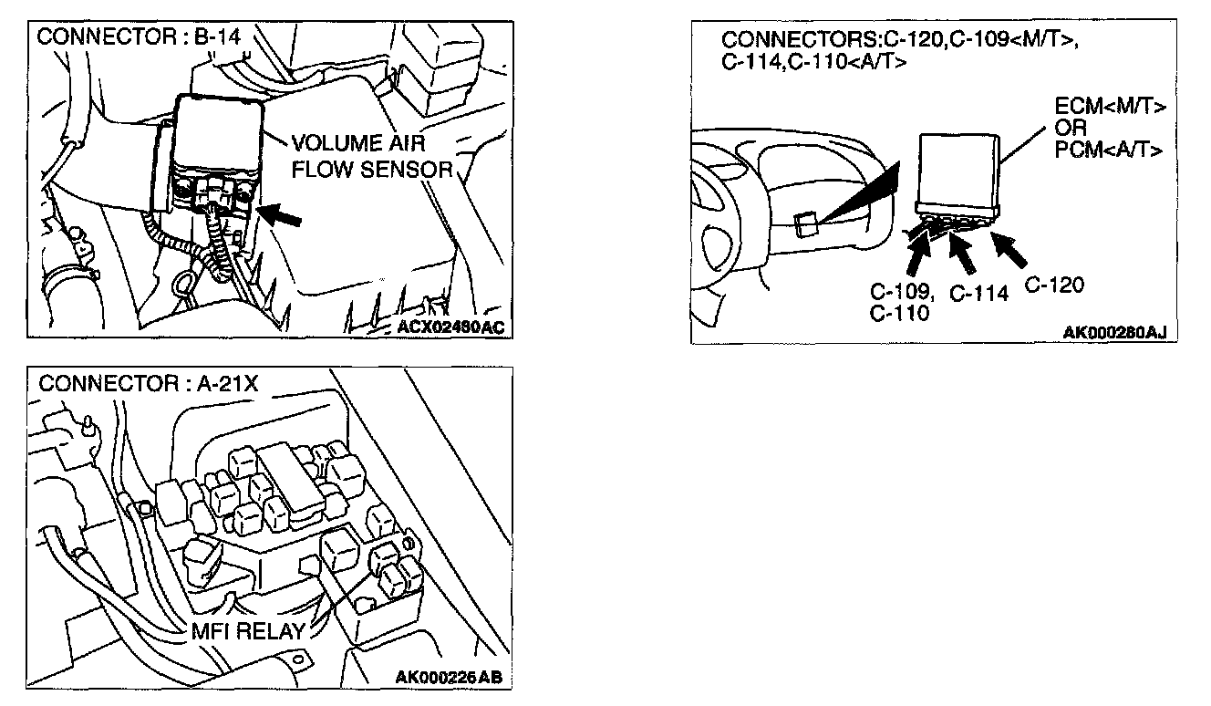 YES: Repair harness wire between MFI relay connector A-21X terminal 1 and volume air flow sensor connector B-14 terminal 4 because of harness damage.Then go to Step 13.