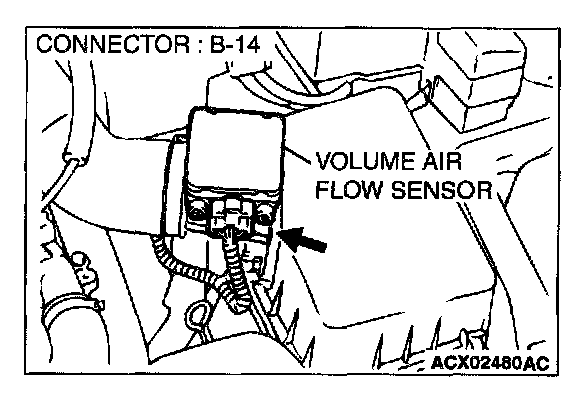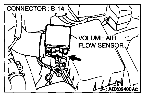 STEP 1. Using scan tool MB991502, check data list item 12: Volume Air Flow Sensor.