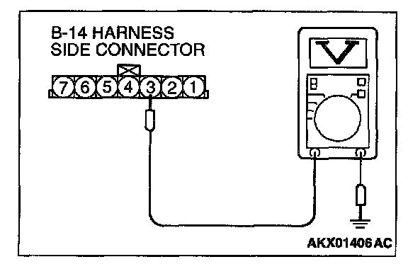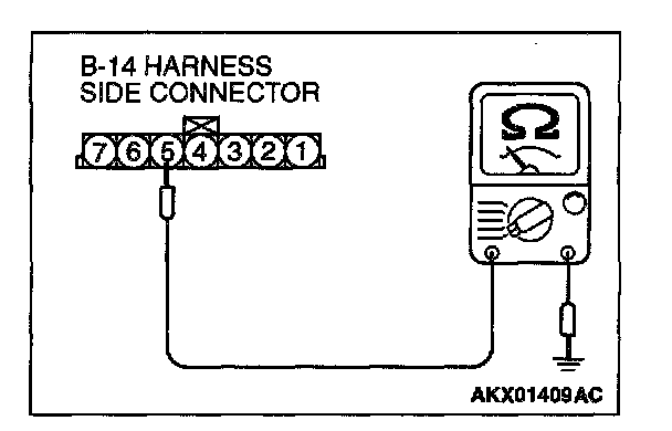 1. Disconnect the connector B-14 and measure at the harness side.