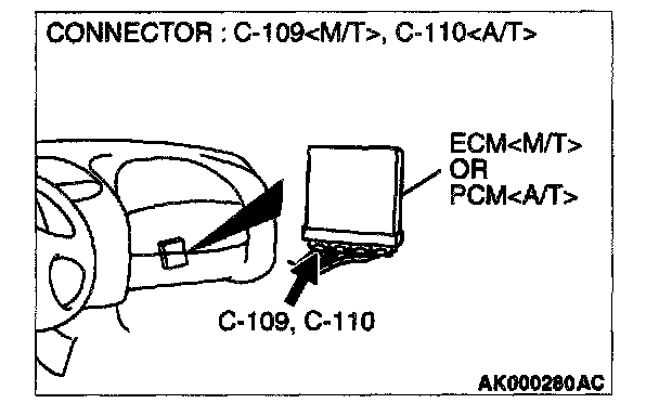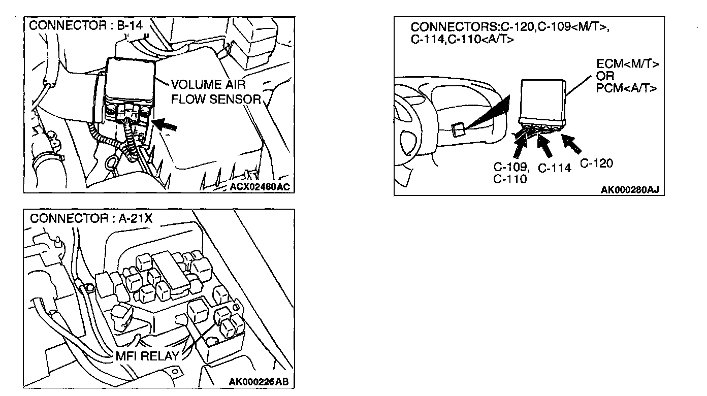 STEP 3. Check connector B-14 at volume air flow sensor and connector C-109 at ECM