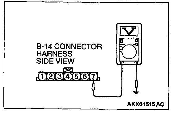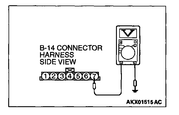 STEP 2. Check the reset signal voltage at volume air flow sensor connector B-14 by backprobing.