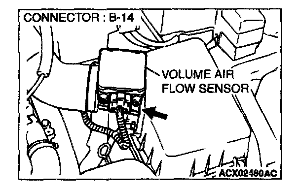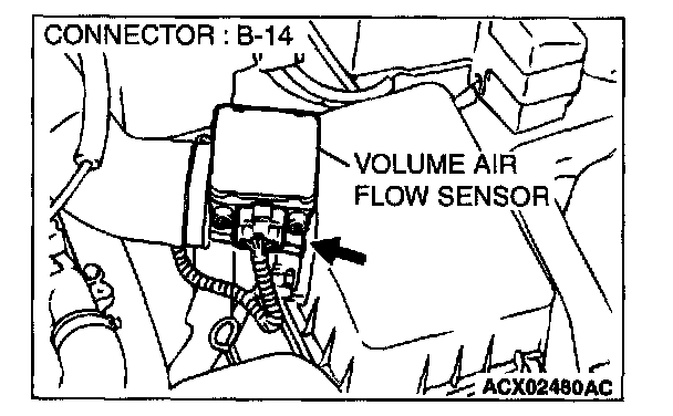 3. Set scan tool MB991502 to the data reading mode for item 12, Volume Air Flow Sensor.