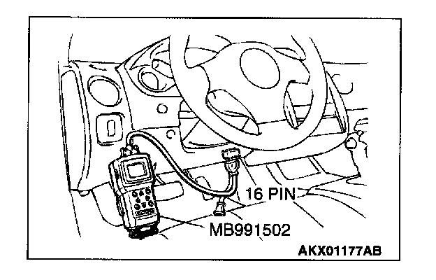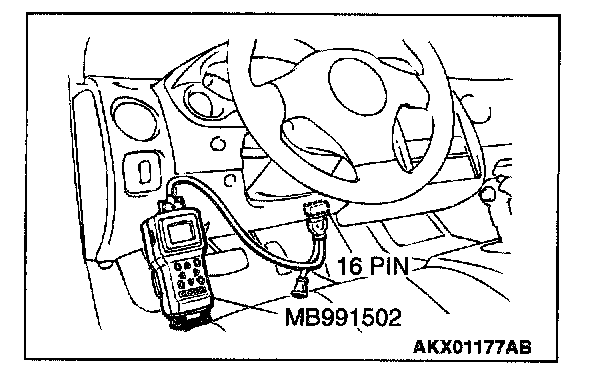 CAUTION: To prevent damage to scan tool MB991502, always turn the ignition switch to the "LOCK"(OFF) position before connecting or disconnecting scan tool MB991502.