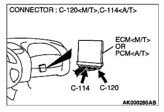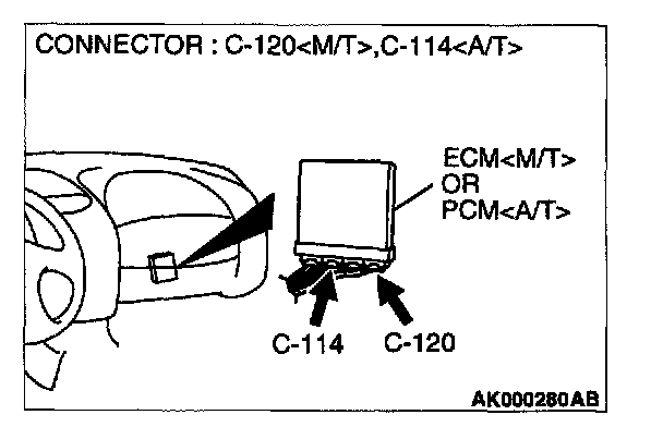 STEP 3. Check connector B-14 at the barometric pressure sensor and connector C-120 at ECM