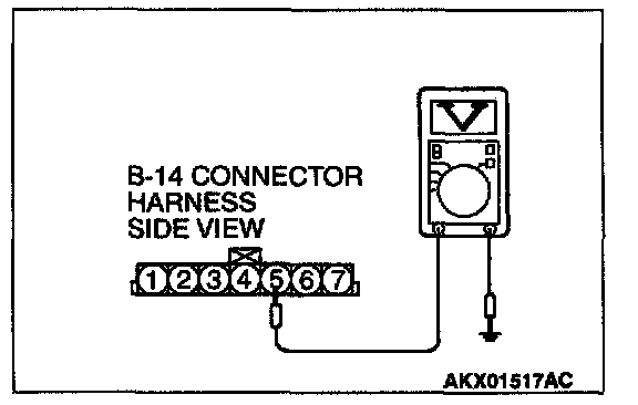 STEP 7. Check the ground voltage at barometric pressure sensor connector B-14 by backprobing.