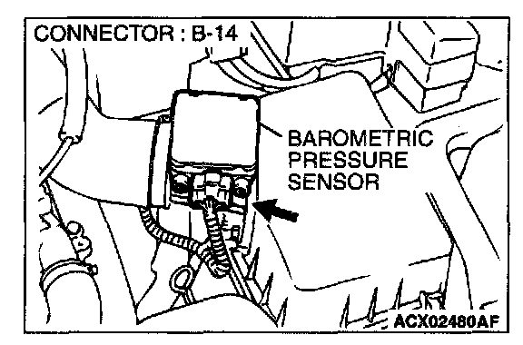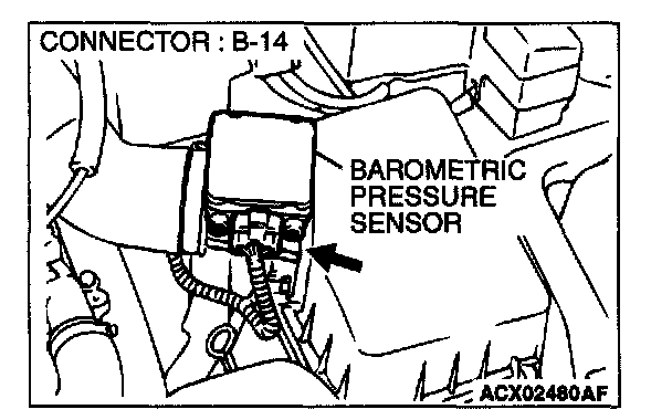 3. Set scan tool MB991502 to the data reading mode for item 25, Barometric Pressure Sensor.