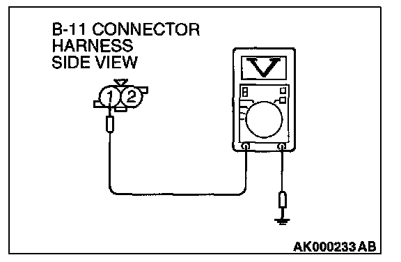 STEP 2. Check the sensor output voltage at engine coolant temperature sensor connector B-11 by backprobing.