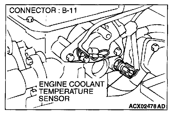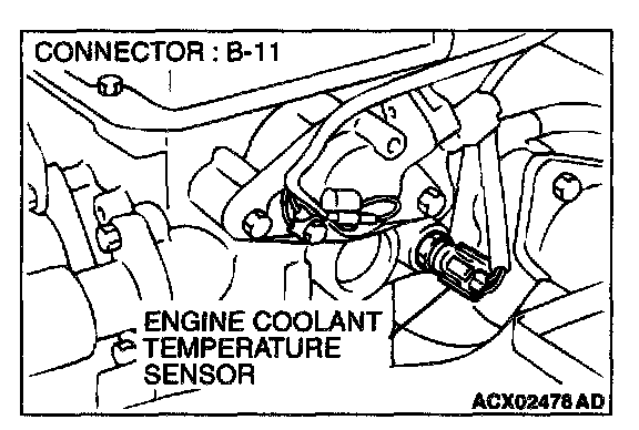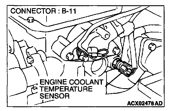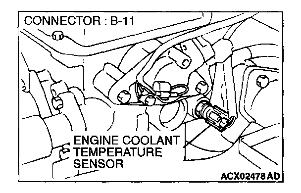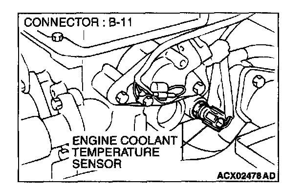 1. Disconnect the engine coolant temperature sensor connector B-11.