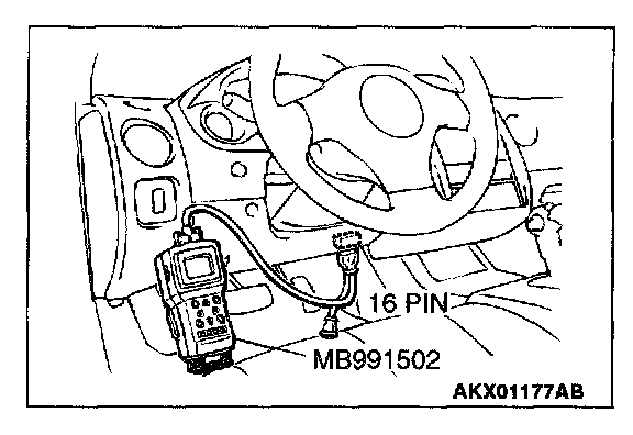 1. Connect scan tool MB991502 to the data link connector.