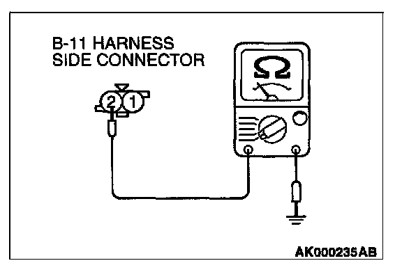 1. Disconnect the connector B-11 and measure at the harness side.