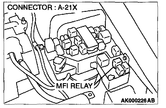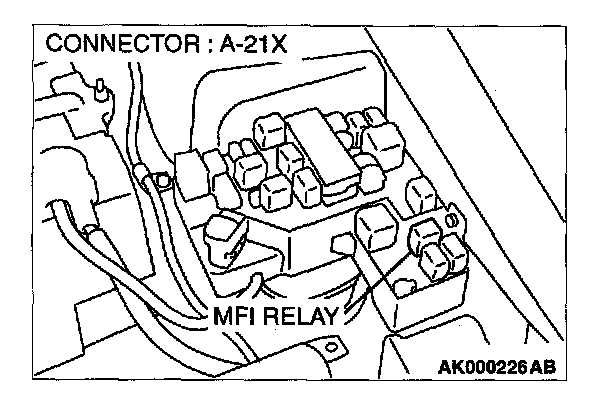 STEP 4. Check connector A-21X at the MFI relay for damage.