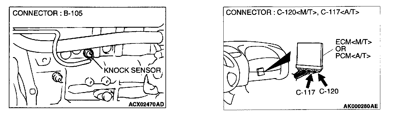 STEP 1. Check connector B-105 at the knock sensor for damage.