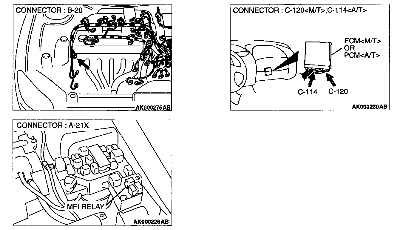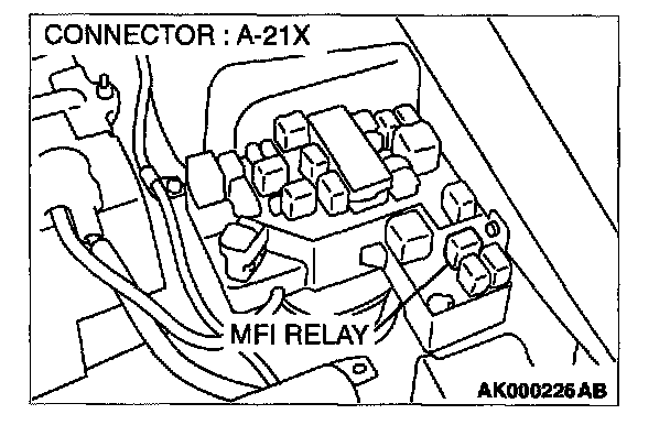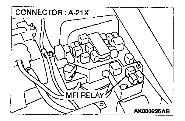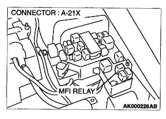 STEP 14. Check connector A-21X at the MFI relay for damage.
