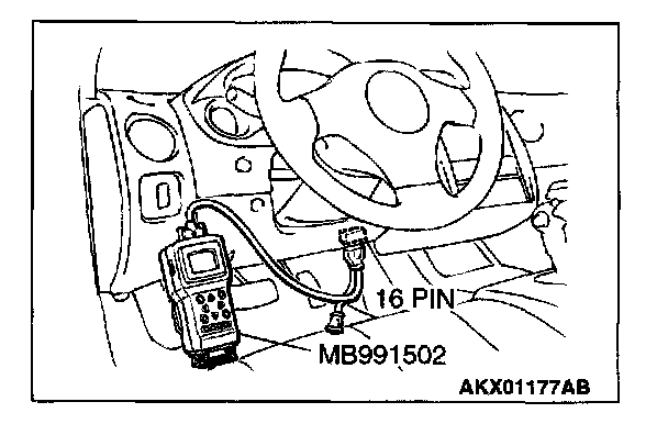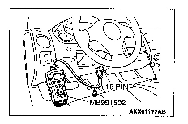 CAUTION: To prevent damage to scan tool MB991502, always turn the ignition switch to the "LOCK"(OFF) position before connecting or disconnecting scan tool MB991502.