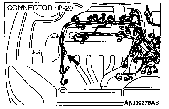 STEP 5. Check connector B-20 at the crankshaft position sensor for damage.
