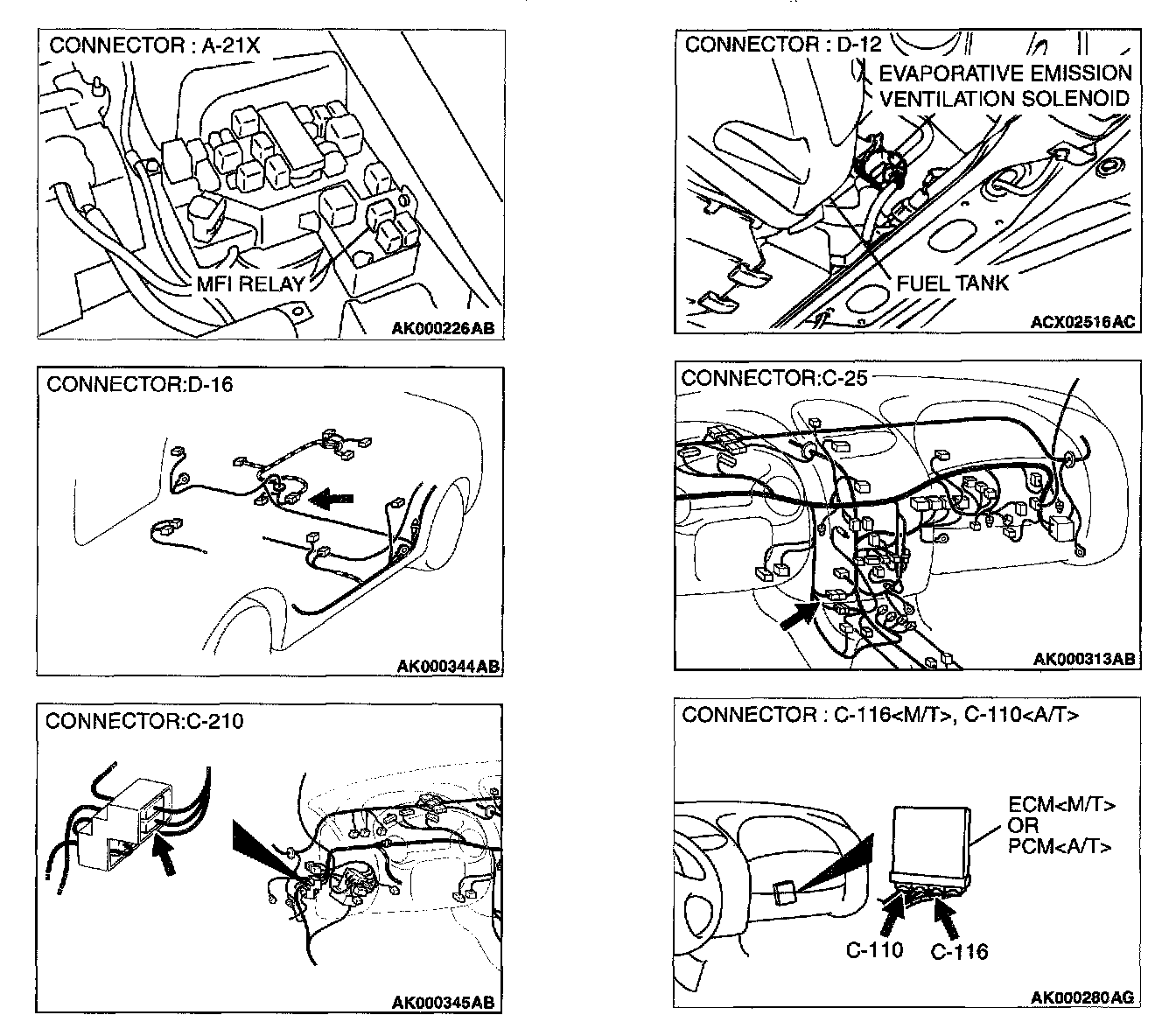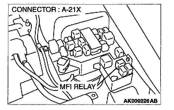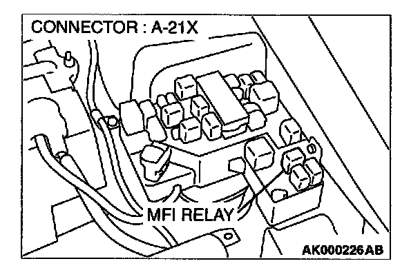 STEP 5. Check connector A-21X at MFI relay for damage.