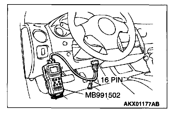 1. Connect scan tool MB991502 to the data link connector.