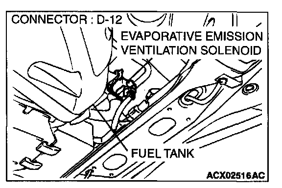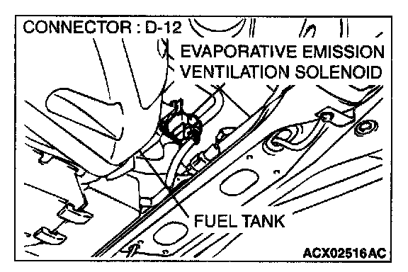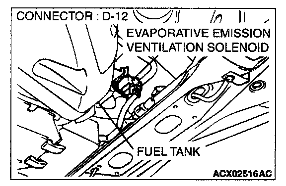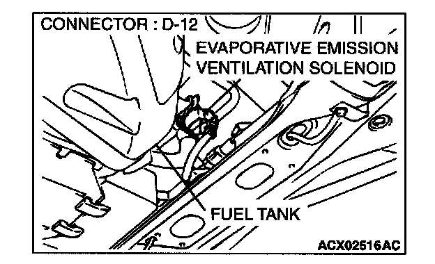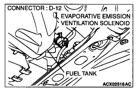 1. Disconnect the evaporative emission ventilation solenoid connector D-12.