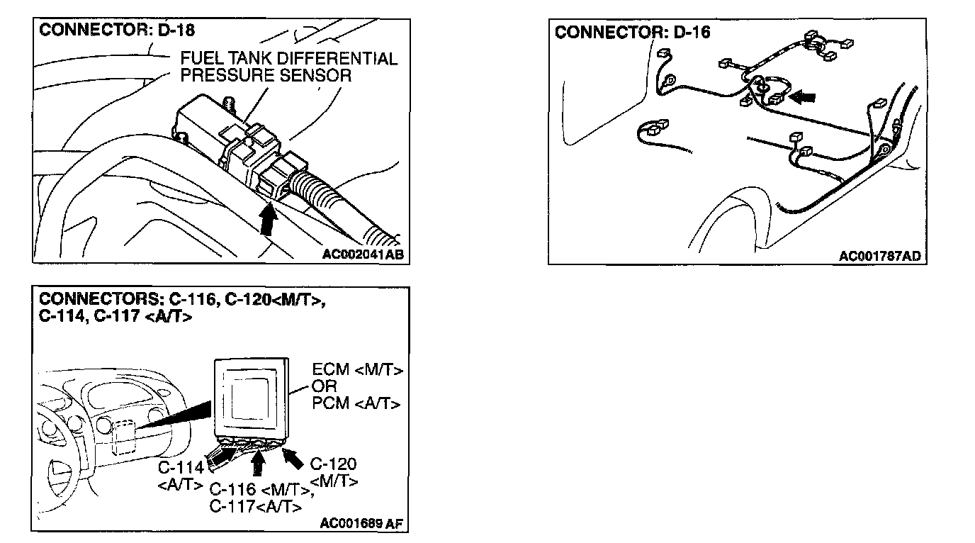 1. Disconnect fuel tank differential pressure sensor connector D-18 and intermediate connector D-16.